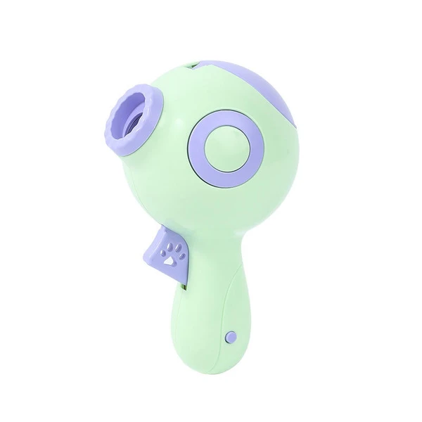 This innovative pet toy combines a treat dispenser with a laser pointer, offering a fun and engaging way to interact with your furry friends. It's designed to provide entertainment and mental stimulation for both dogs and cats. Features: Treat Launcher: Load your pet's favorite dry food or treats into the dispenser. Pulling the trigger launches treats for your pet to catch, encouraging active play and rewarding good behavior. Built-in Laser Pointer: The gun includes an infrared laser light, perfect for captivating cats who love to chase light. The laser can also be used to engage dogs in playful pursuits. Dual Functionality: Offers two modes of interaction: - Feeding Mode: Launch treats to encourage physical activity and make feeding time more exciting. - Play Mode: Use the laser to stimulate your pet's natural hunting instincts and provide mental enrichment. Ergonomic Design: The toy is designed for comfortable handheld use, making it easy for owners to play with their pets. Paw Print Trigger: The trigger features a cute paw print design. Easy to Use: Simple steps for loading treats and activating the laser. Benefits: Relieve Boredom: Keeps pets entertained and mentally stimulated. Promote Relationship: Enhances the bond between pet and owner through interactive play. Available in Multiple Colors: Comes in vibrant pink, green, and white options. Compact Size: The product is portable and easy to store. This interactive toy is a fantastic way to keep your pets active, happy, and engaged, fostering a stronger connection between you and your beloved animals.