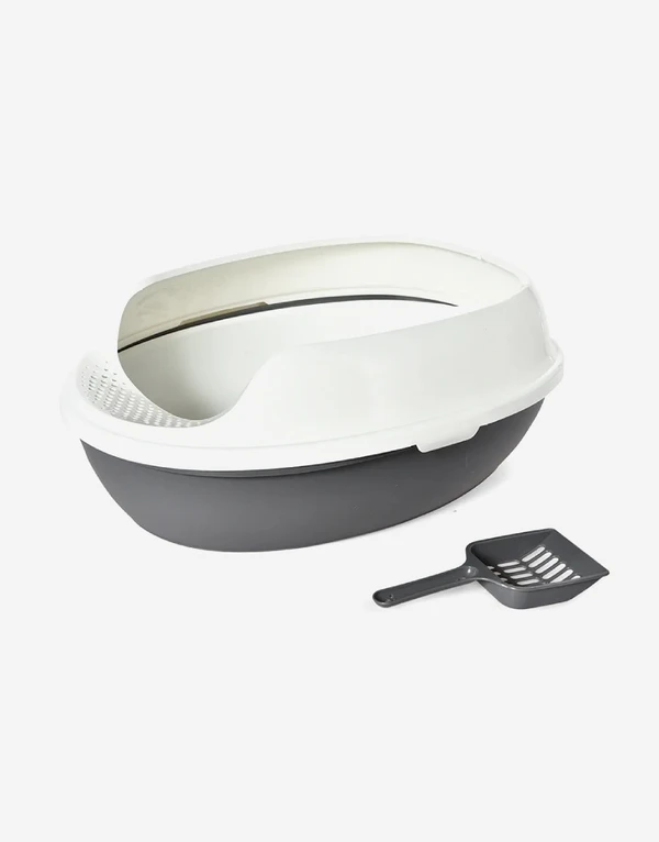 Naomi Large Splash-Proof Cat Litter Box with Sifting Tray Net & Scoop – Anti-Scatter High-Sided Kitty Toilet (50x38x20cm) (YE87651N)